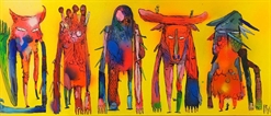 Il représente souvent des animaux hybrides, à double têtes ou sans jambes, parfois à moitié finis. Une façon pour lui de faire passer des idées ou des émotions, un vecteur pour représenter l’humain sans tomber dans une atmosphère glauque.