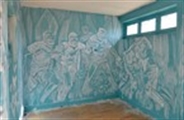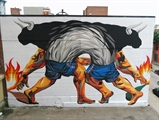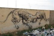 Avec de subtils jeux de couleurs et un traité « brut », il peint des animaux et des corps en mouvement, parfois des scènes de combat, sur mur et sur toile.