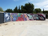 En extérieur, les murs disponibles sont confiés à des artistes qui réalisent des fresques pour accueillir les visiteurs. On y trouve également des installations posées là lors d’événements ainsi que le bus à impérial « Otocar » peint par Speed Graphito en 1993.
