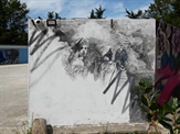 En extérieur, les murs disponibles sont confiés à des artistes qui réalisent des fresques pour accueillir les visiteurs. On y trouve également des installations posées là lors d’événements ainsi que le bus à impérial « Otocar » peint par Speed Graphito en 1993.