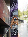 Très rapidement les murs extérieurs du Lavo//Matik ont été investi par les artistes, principalement l’escalier qui descend vers ce qui s’appelle l’allée Paris-Ivry, une nouvelle voie qui doit relier les deux villes en passant sous le périphérique. Avec le temps, les deux grands murs en haut de l’escalier sont devenus les « Murs Officiels » du Lavo//Matik, investis le plus souvent par des artistes qui exposent dans la galerie.
